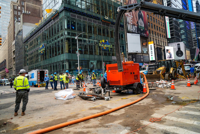 ABD'nin New York kentinde salı günü erken saatlerde kentin en işlek yeri Times Meydanında 40. Cadde ve 7. Caddenin altında döşeli 127 yıllık su şebekesinin patladı.