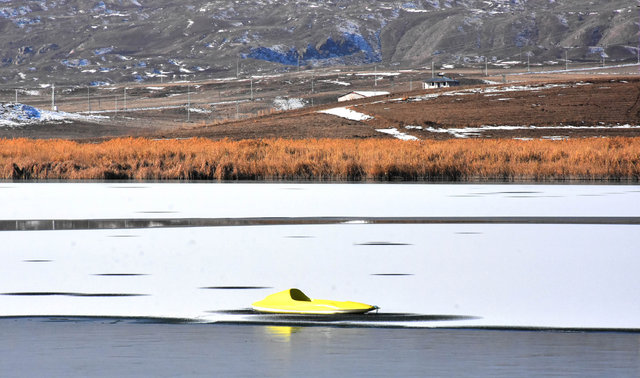 Göl kenarındaki sosyal tesisin işletmecisi Hasan Hüsnü Öztürk, "Göl buz tutmaya başladı. Ama kar yağışı bu sene biraz az."