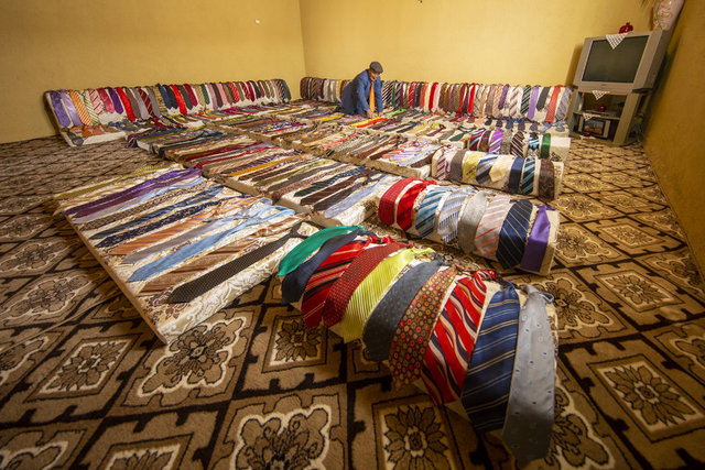 AA'nın haberine göre ilçeye 15 kilometre uzaklıktaki Bedir Bey mezrasında oturan 4 çocuk babası Akbulut, renkli yaşamıyla dikkati çekiyor. Hayvanlarını otlatırken, ev işlerini yaparken takım elbise ve kravatını çıkarmayan Akbulut, evinin en büyük odasında rengarenk kravatlarının bir kısmını sergiliyor.