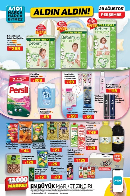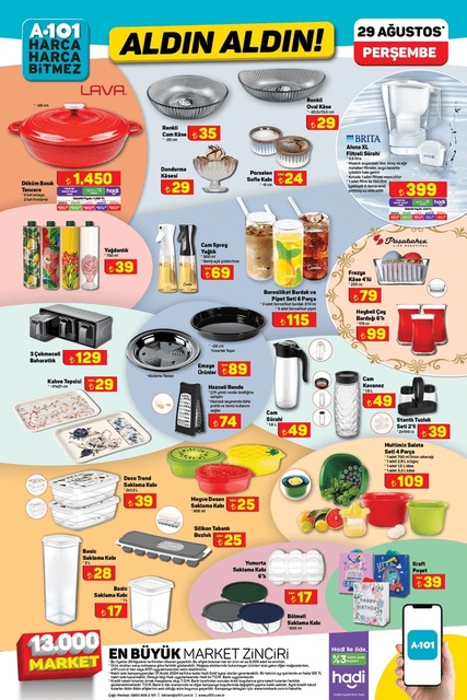 A101 aktüel 29 Ağustos 2024 kataloğu paylaşıldı. Böylece bu Perşembe mağazalarda satışa çıkacak A101 indirimli ürünleri belli oldu. Broşüre göre teknolojik ürünler, küçük ev aletleri, beyaz eşya, gıda ve birçok temel ihtiyaç ürünü uygun fiyatlarla raflarda yerini alacak. Öte yandan A101 kırtasiye ürünleri yeni eğitim öğretim dönemi öncesi öğrenci ve velilerle buluşacak. Peki, A101’de bu hafta neler var? İşte, 29 Ağustos 2024 A101 aktüel ürünler kataloğu…