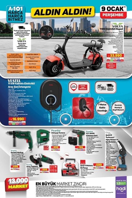 A101 9 Ocak Perşembe aktüel kataloğu: Elektrikli moped geliyor!