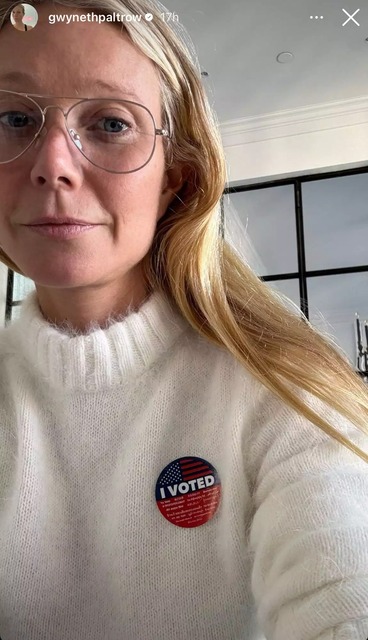 Ünlü oyuncu Gwyneth Paltrow, 'Oy verdim' etiketiyle poz verdi.