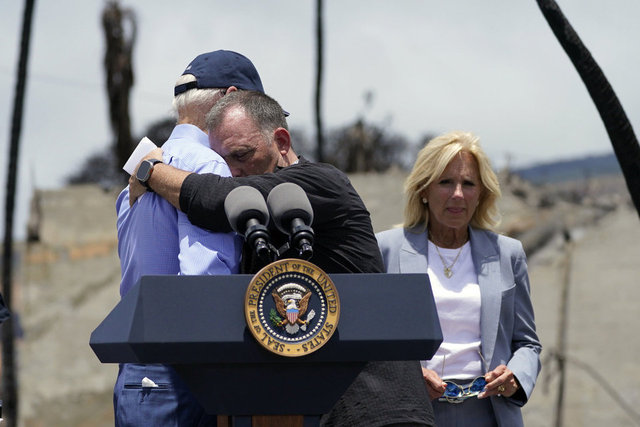 Biden, Hawaii ziyaretinde yaptığı konuşmada, ABD ulusunun yangından kurtulanlarla birlikte "yas tuttuğunu" belirterek, federal hükümetin Maui'nin ölümcül yangılardan kurtulması için "ne kadar sürerse sürsün yardıma devam edeceği" taahhüdünde bulundu.