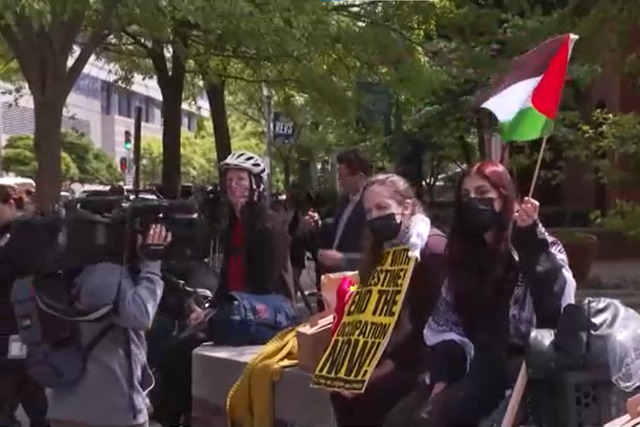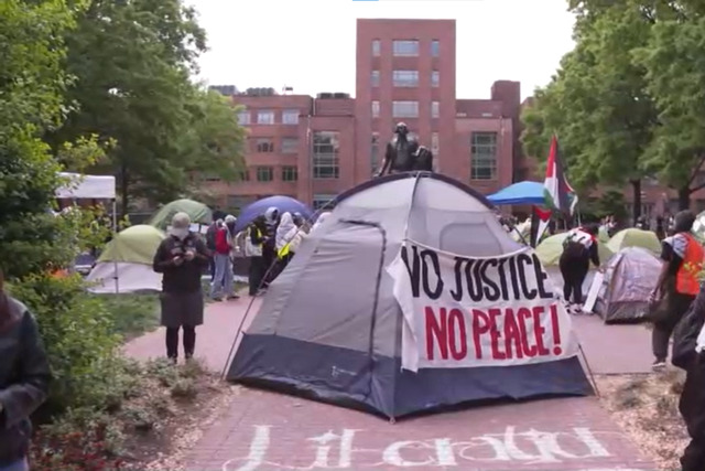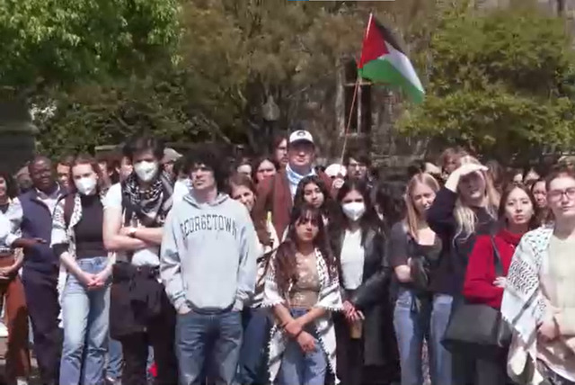 Georgetown Üniversitesi'nin ana kampüsünün ortasında yer alan büyük bahçede bir araya gelen yüzlerce öğrenci, "Özgür Filistin" ve "Gazze'de hemen ateşkes" sloganları attı. Bazı öğrenciler ise polisin sınırlı izin verdiği alanlarda çadırlar kurdu.