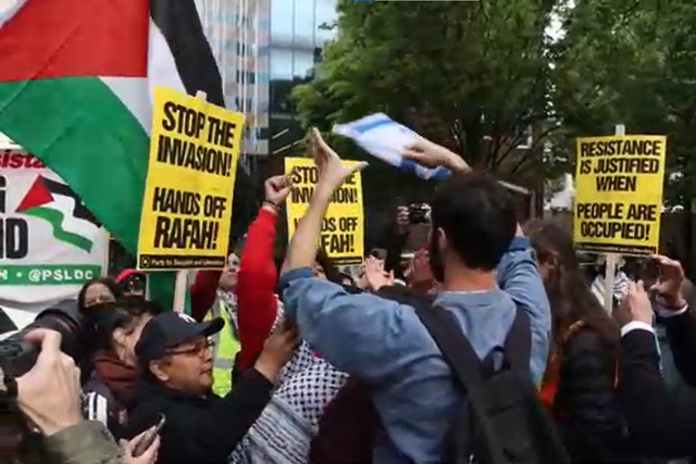 Gösteriyi provoke etmeye çalışan İsrail yanlısı kişi, polisin müdahalesiyle bölgeden uzaklaştırıldı.