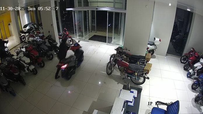 Şüphelinin, kontrol kumandasından kepengi açmasıyla diğerleri de içeri girdi. Koşarak içeride keşif yapan şüpheliler, beğendikleri motosikletleri çalıştırdı. 1 dakikada çaldıkları motosikletlerle dışarı çıkan şüpheliler, bölgeden ayrıldı.