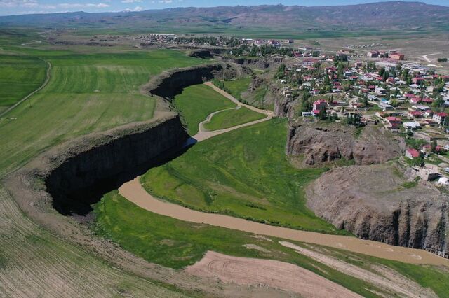 Ağrı'nın Diyadin ilçesi merkezinde yer alan ve adını içinden geçen Murat Nehri'nden alan kanyon, kışın karla kaplı görüntüsüyle ilkbaharda da yeşilin farklı tonlarıyla ayrı bir güzelliğe bürünüyor.