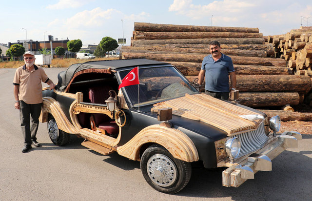 Aracın ahşap tasarımını yaklaşık 2.5 yılda tamamladıklarını belirten İyidoğan, otomobili görenlerin büyük bir merakla otomobile baktıklarını ifade etti.