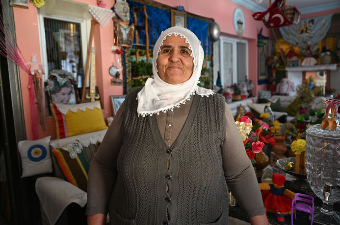 "Babamın yabası, dirgeni var, annemin çömçesi, süt süzeği, küpü var. Annemin çeyizime verdiği heybe var. Bir komşum gaz ocağı verdi, dışarıdan çok bir şey gelmiyor. Kayseri'deki gelinim bazen bir şeyler getirir. 7 odanın 7'si de bu halde döşeli. Giriyorum, çıkıyorum, içinde dolanıyorum. Bizden başkası kolay yürüyemez, gider tökezler. Biz bir düz gideriz, biraz yan yan gideriz. Torunlarım gelince dokunmazlar, oynar, bakar yerine koyarlar. Plastik çiçekleri falan çok severim."