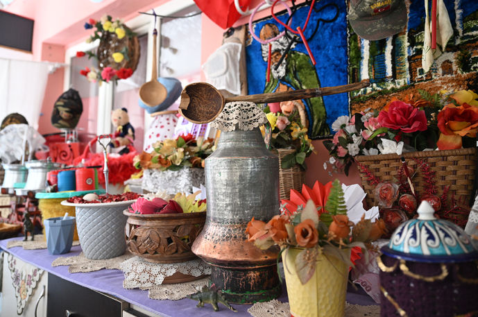 Anneannesinden kalma ahşap büfeyi, babasının tarlada kullandığı dirgeni, annesinin 'çömçe' adı verilen ahşap kepçesini evinde sergileyen Yakut, oğullarının askerlik şapkalarını, çeyizinden kalma dantelleri, banyo liftlerini, eski güğümleri ve sevdiği plastik çiçekleri bir düzen içinde saklıyor.