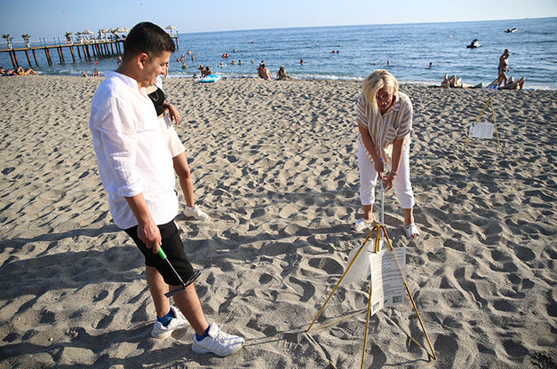 Alanya Çevre Eğitim ve Mavi Bayrak Derneği Başkanı Şerefnur Kayhan, Konaklı Mahallesi plajında bulunan nesli tükenme tehdidi altındaki caretta carettaların yuvalarını çevrecilerle gezdi.