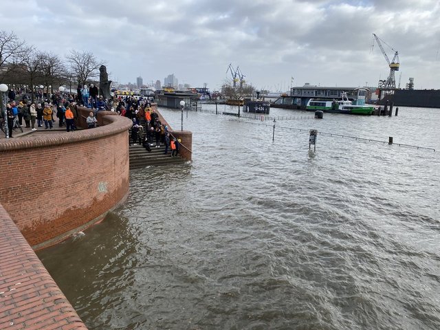 Şiddetli fırtınanın vurduğu Hamburg’da Elbe Nehri’ndeki su seviyesinin 2,5 metre yükselmesi sonucu kentin meşhur balık pazarı da sular altında kaldı. Polis balık pazarına giden otoyolları trafiğe kapatırken, suların ana caddelere taşmaması için barikat oluşturuldu.