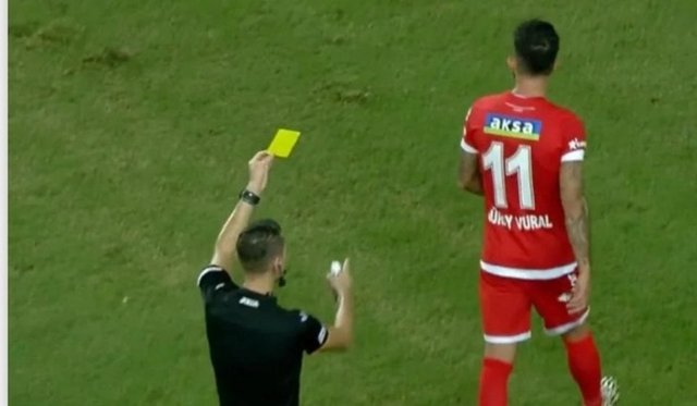 Deniz Çoban: Faul düdüğü çalıyor, Güray Vural topa vuruyor. Güray'ın topa vurduğunu görmüyor. Sonrasında Güray alkışladığı için sarı kart çıkardı.