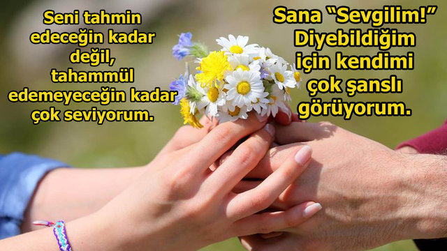 Seni denizdeki kumlar, gökteki yıldızlar, ormandaki ağaçlar, dünyadaki insanlar, okyanustaki sular, sahildeki martılar ve güneşin ışıklarından daha çok seviyorum. Birlikte daha güzel günlere gitmemiz dileğiyle sevgililer günün kutlu olsun!