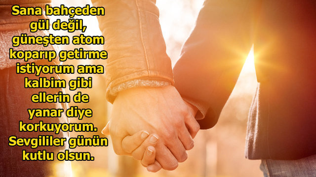 Gözlerin gözlerimde, ellerin ellerimde, aşkın içimde ve ruhun bedenimde olduğu sürece seni sevmeye devam edeceğim. Sevgililer günün kutlu olsun!
