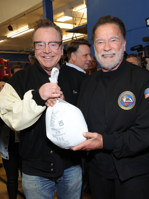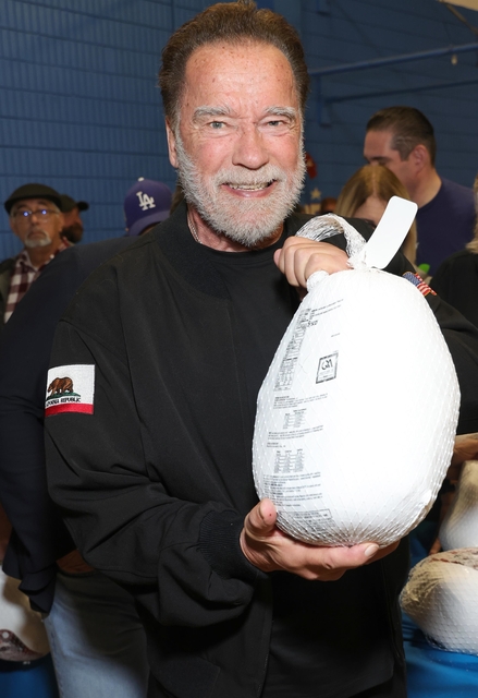 Ünlü oyuncu ve eski California Valisi Arnold Schwarzenegger, Şükran Günü için Los Angeles'ta hindi dağıttı.