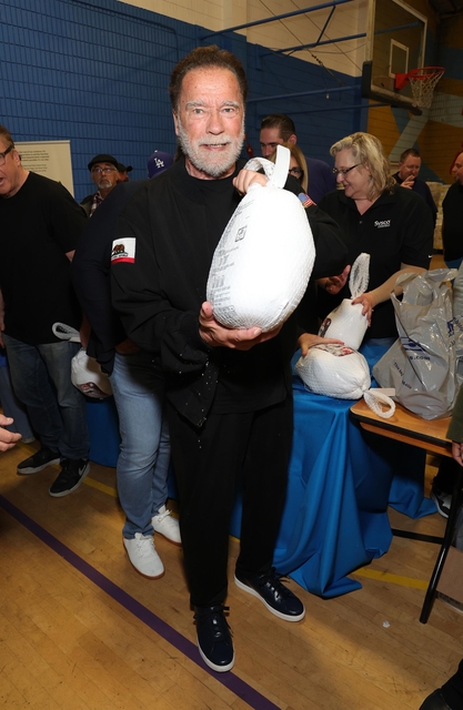 77 yaşındaki Schwarzenegger, Hollenbeck Gençlik Merkezi'ne giderek ailelere Şükran Günü geleneği olarak hindi dağıtımı yaptı.