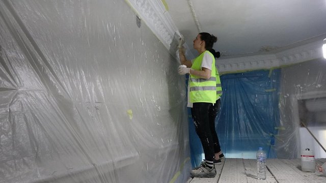Dış cephe sıvaları çatlayan, duvar boyaları kabaran, mermerleri kararan ve mobilyalarında dökülmeler meydana gelen köşk, restoratör, inşaat mühendisi ve mimarlardan oluşan yaklaşık 50 kişilik uzman ekip tarafından restore ediliyor.