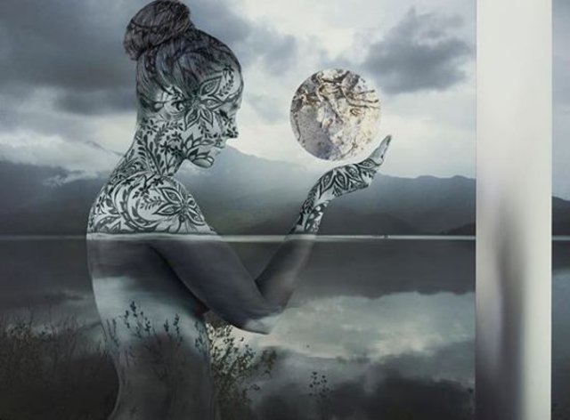 Tuvalle bir bütün haline getirdiği bedenlere, desenlerini, çizimlerini işliyor.