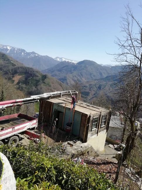İHA'nın haberine göre ahşap evini bulunduğu yerden taşımak isteyen Altıparmak, evi bozmadan nasıl taşıyacağını düşünürken, aklına vinçle bu işi çözebileceğini geldi.
