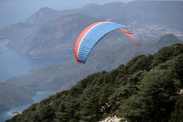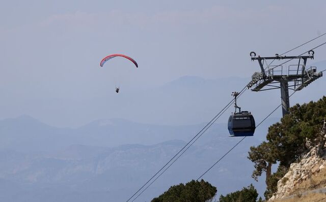 Muğla'nın Fethiye ilçesine tatile gelen macera tutkunları, kara yolu ya da teleferikle yolculuğun ardından Ölüdeniz Mahallesi'ndeki 1965 rakımlı Babadağ'a ulaşıyor.