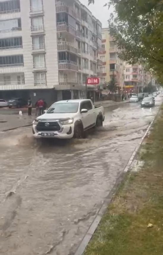 Meteoroloji Genel Müdürlüğü’nün uyarısının ardından kentte gün boyunca aralıklarla süren sağanakla bazı cadde ve sokaklar suyla doldu. Araçlar suyla dolan caddelerde ilerlemekte güçlük çekerken, bazı ev ve iş yerlerini de su bastı.