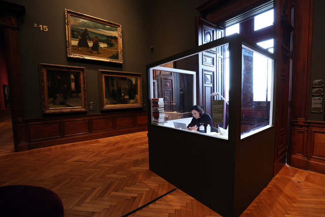 Belçikalı yazar Saskia De Coster, müzede kurulan cam odada bir ay geçirip son kitabını bitirdikten sonra münzevi hayatını tamamlayarak kendisini özgür bıraktı