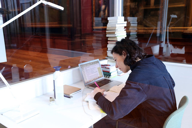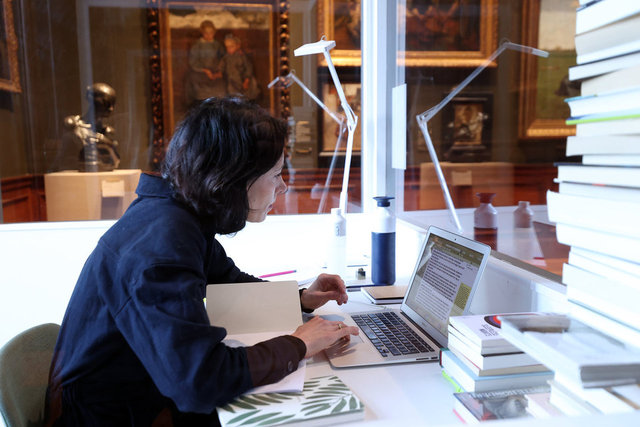 "Sanırım bana ikisi de lazımmış. Sadece bir keşiş gibi, bir münzevi gibi olamam, ki aslında bu konuda çok iyiyimdir. Dışarının hır gürü olmadan, buradaki muhteşem sanat eserleri içinde olmak bir bakıma özgürlük veriyor. Ama aynı zamanda insan ilişkileri, insanların etkileşimleri hakkında yazmak istiyorum.
