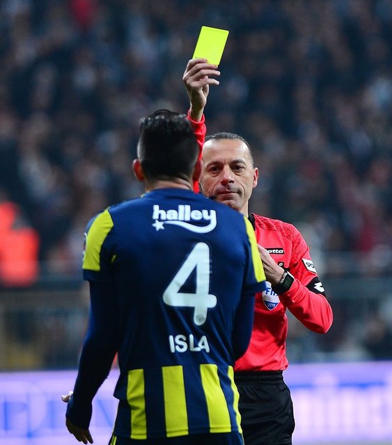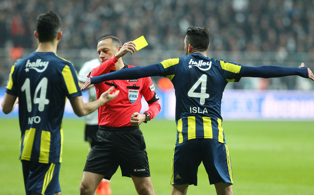 SARI KARTLAR: Dk. 34 Isla, Dk. 38 Şener Özbayraklı (Fenerbahçe), Dk. 39 Vida, Dk. 50 Tolgay Arslan, Dk. 90+1 Quaresma (Beşiktaş)