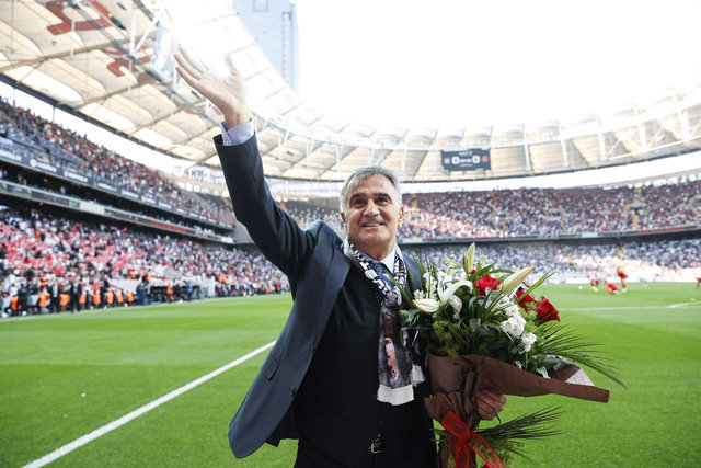 Karşılaşma öncesi deneyimli teknik adam için tezahürat yapan siyah-beyazlı taraftarlar, Güneş'in sahaya çıkmasıyla birlikte kendisini coşkuyla karşıladı.