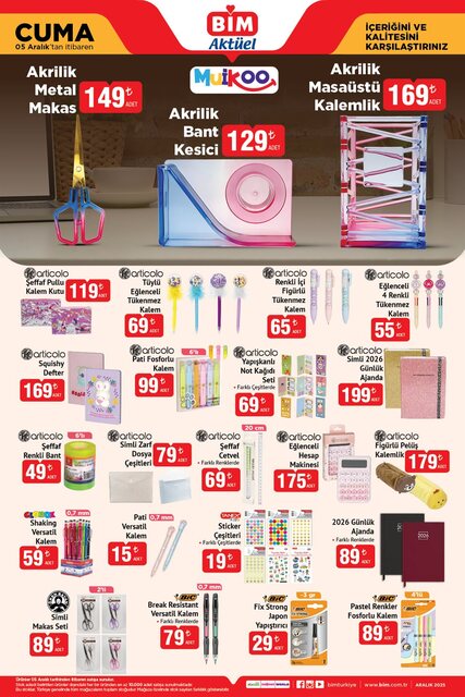 BİM'de bu hafta yeni aya özel fırsatlar alışverişseverler ile buluşuyor. BİM 2-5 Aralık kataloğunda; tuşlu telefon, ankastre set teknolojik ürünler, giyim çeşitleri, küçük ev aletleri, gıda ile temizlik ürünleri ve birçok kategoride ürün indirimli fiyatlarıyla alıcılara sunuluyor. İşte güncel BİM aktüel 2-5 Aralık ürünler kataloğu...