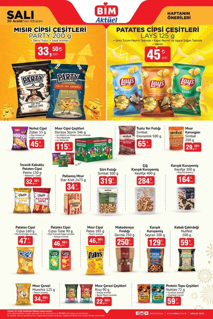 Yeni haftanın BİM aktüel ürünler kataloğu yayınlandı. 30 Aralık Salı gününden itibaren BİM indirim kataloğunda sucuk, kavurma, karışık kuruyemiş, cips, yüz bakım serum seti yer aldı. İşte, BİM 30 Aralık 2025 aktüel ürünler kataloğu indirimlerinin tamamı