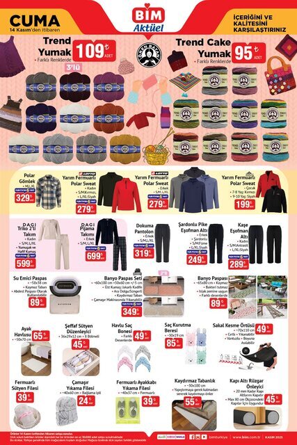 Yeni haftanın BİM aktüel ürünler kataloğu yayınlandı. Çocuklar için oyuncaklar, ev ihtiyaçlarını karşılamak isteyenler için mutfak araç gereçleri indirimli ürünler arasında yer aldı. BİM 14 Kasım Cuma günü indirimlerinde tekstil ürünleri de dikkat çekti. İşte, BİM aktüel ürünler kataloğu indirim listesi