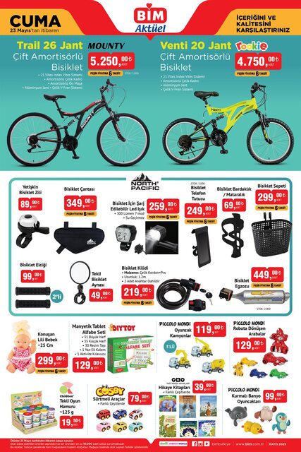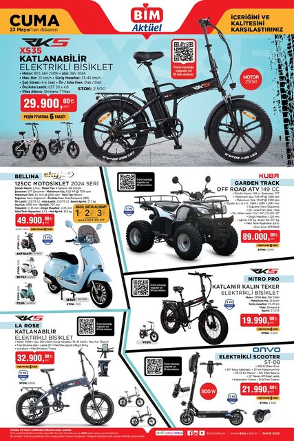 BİM'de yaz hazırlıkları başladı. 20-23 Mayıs kataloğu ile güncel ürünler alışverişseverler ile buluşuyor. BİM'de 20-23 Mayıs'ta; tatil ürünleri, elektrikli bisiklet, teknolojik ürünler, giyim çeşitleri, küçük ev aletleri, gıda ile temizlik ürünleri ve birçok kategoride ürün indirimli fiyatlarıyla alıcılarını bekliyor. İşte BİM aktüel 20-23 Mayıs aktüel ürünler kataloğu ve fiyat listesi...