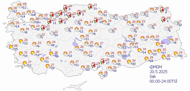 Mayıs ayının gelişiyle birlikte, yurt genelinde hava sıcaklıkları artmaya başladı. Meteoroloji Genel Müdürlüğü tarafından yapılan tahminlere göre: Karadeniz ve Akdeniz Bölgeleri yer yer yağışlı diğer bölgelerin ise parçalı bulutlu olması bekleniyor. Peki, "Bugün hava nasıl olacak?" İşte 20 Mayıs Salı İstanbul, İzmir, Ankara hava durumu tahminleri...