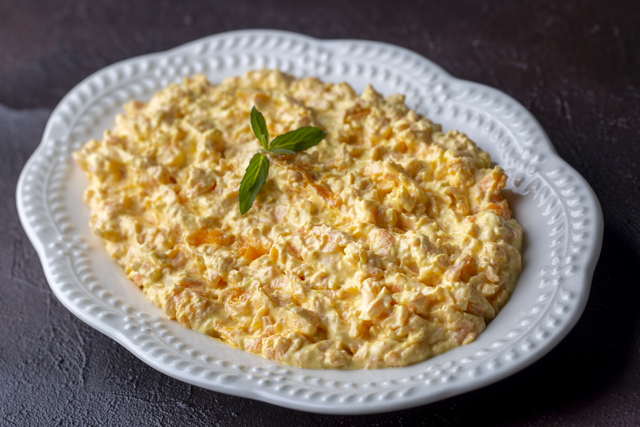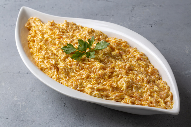 Soğuyan havuçları ve dövülmüş cevizi yoğurtlu karışıma ekleyip iyice harmanlayın. Servis tabağına yayarak servis yapın.