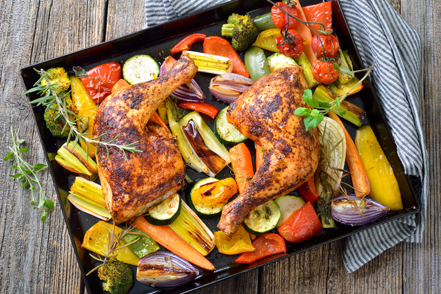 Önceden ısıtılmış 200 derece fırında tavuklar kızarana ve sebzeler yumuşayana kadar yaklaşık 40-45 dakika pişirin.