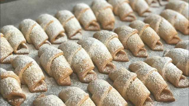 Derin bir kaba unu koyup ortasını açın ve yumurta, yoğurt ve oda sıcaklığında yumuşamış tereyağı ve pudra şekerini de ekleyip karıştırın. Karışımına kenardan un alarak yoğurma olarak devam edin. Kabartma tozu, vanilyayı ve isteğe bağlı nişastayı ekleyip yoğurun. Yumuşak bir hamur elde edeceksiniz. Yaklaşık 10 dakika yoğurduğunuz kurabiye hamurunu 20 dakika dinlendirin ve bu sırada iç harcı hazırlayın. Elmaları rendenin kalın tarafıyla rendeleyin. Suyunu çekene kadar orta ateşte, toz şeker ilavesiyle kavurun. Ceviz içi ve tarçını katıp, karıştırdıktan sonra ocaktan alın. İç harcınız soğuyup hamurunuz dinlendikten sonra. Hamurdan ceviz büyüklüğünde koparıp hamuru elinizle açıp iç harçtan bir kaşık yardımı ile koyun ve hamuru kapatıp avucunuzda tekrar yuvarlayın. Bu sayede elmalı harç içeride kalacak. Hamur bitene kadar bu işleme devam edin. Yağlı kağıt serdiğiniz tepsinize kurabiyeleri dizin ve önceden ısıtılmış 200 derecelik fırında üzeri kızarana dek pişirin. Pişen kurabiyeleriniz soğuduktan sonra üzerlerini süzgeç yardımıyla pudra şekeri ile süsleyin. Afiyet olsun...