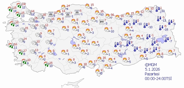 5 OCAK PAZARTESİ HAVA DURUMU HARİTASI