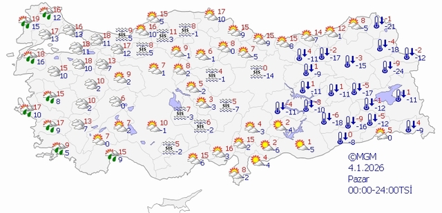 4 OCAK PAZAR HAVA DURUMU HARİTASI