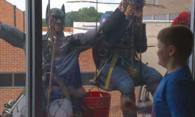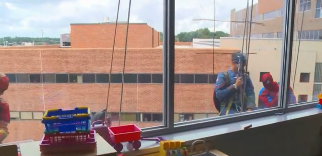 Çok özel güçlere sahip bu aksiyon kahramanları bu defa film setinde değil; hastanedeler... Hastane camlarını silerken, çok hasta olan çocukların yüzünü bir nebze de olsa güldürebilmek için çok sevilen süper kahramanların kılığına girdiler. Görevleri hasta olan çocukların kalplerini ısıtmak olan görevliler amacına ulaştı, yüzlerinde gülücükler açan çocuklar camlara koştu
