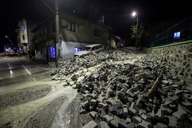 Bazı noktalarda asfalt ve kaldırım taşlarının yerinden kalktığı objektiflere yansıdı.