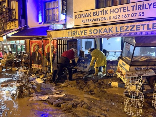 Tirilye Mahallesi'nde 5 yıldır esnaflık yaptığını söyleyen Alaattin Ocak, ''Çok büyük bir felaket, bütün her yer berbat durumda. Şu anda hiç bir tane cihazımız kalmadı. Mobilyalarımız, ürünlerimiz hepsi bitti.