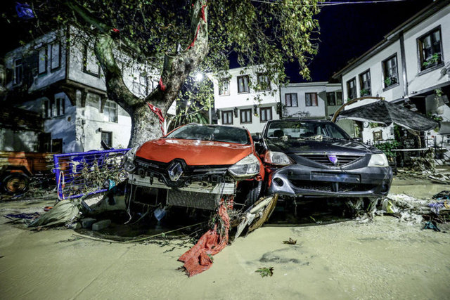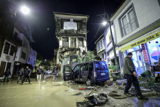 Sokaklar, akan suyun sürüklediği toprak yığınları ve ağaç dallarıyla dolarken park halindeki araçlar ise çamura bulandı. Ekiplerin su basan evlerde temizleme ve hasar tespit çalışmaları sürüyor.