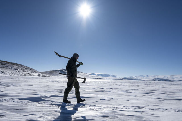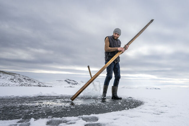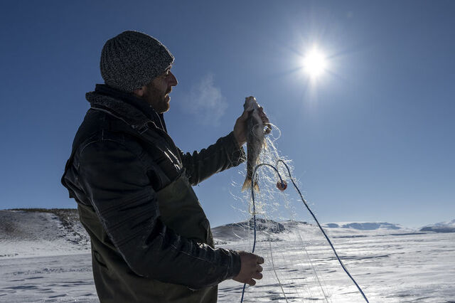İlçede besicilik yapan 43 yaşındaki Nurhak Yazar da 30 yıldır kış mevsiminde "Eskimo usulü" balıkçılık yaparak geçimini sağlıyor. Sabah buzlu göle ulaşan Yazar, kazma yardımıyla suya ulaşana kadar oyuklar açıyor.
