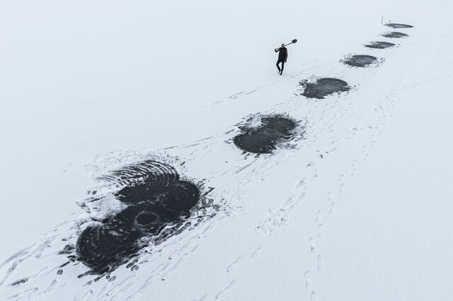 Yazar, buzun altına günler öncesinde bıraktığı ağları, daha sonra toplamak için tekrar geldiğini belirterek, "Hava sıcaklığı sıfırın altında 20-25 derecelerde.