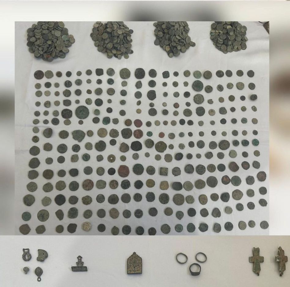 Operasyonda, Roma ve Osmanlı dönemlerine ait olduğu değerlendirilen çeşitli ebat ve boyutlarda 1288 sikke, 3 yüzük, 2 haç şeklinde kolye ucu, taç tokası, mühür ve küpe ele geçirildi.