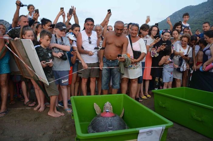 DEKAMER'de tedavi edilen 25 ile 30 yaşlarında olduğu tahmin edilen dişi, 'iribaş' cinsi deniz kaplumbağası, üzerine uydu takip cihazı takılarak, 28 Ağustos 2019'da İztuzu Plajı'ndan denize bırakıldı.