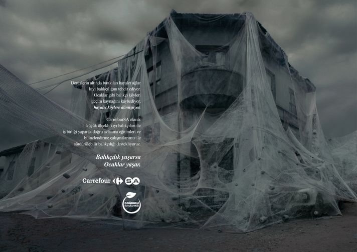 CarrefourSA'nın, 'Balıkçılık Yaşarsa Ocaklar Yaşar' projesi, TBWA\Istanbul imzasıyla hazırlanan bir enstalasyonla aktarıldı. Projeyle, yanlış avlanma sonucu denizlerin altında kalarak balıkların üremesini engelleyen hayalet ağların aslında balıkçılıkla geçinen bir köyü, hayalet bir köye çevirebileceğine dikkat çekiyor.