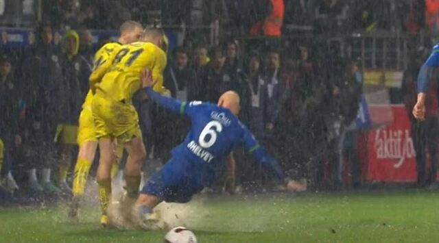 Bülent Yıldırım: Oosterwolde'yi takip edin. Mert Hakan hiç yok olayda. Oosterwolde geldi, Mert Hakan araya giriyor. Rizesporlu oyuncular itiyor, itiyor, 'yapmayın' diyor. Mert Hakan Oosterwolde'yi korumaya çalışırken içeri giren Rizesporlu Halil İbrahim Pehlivan, net kırmızı kartlık hamle yaptı. Mert Hakan'ın boğazından tuttu, itti, süpürdü, çekti. Güzel kardeşim görülüyor, bunu herkes görüyor. Halil İbrahim kırmızı kart görmeliydi.